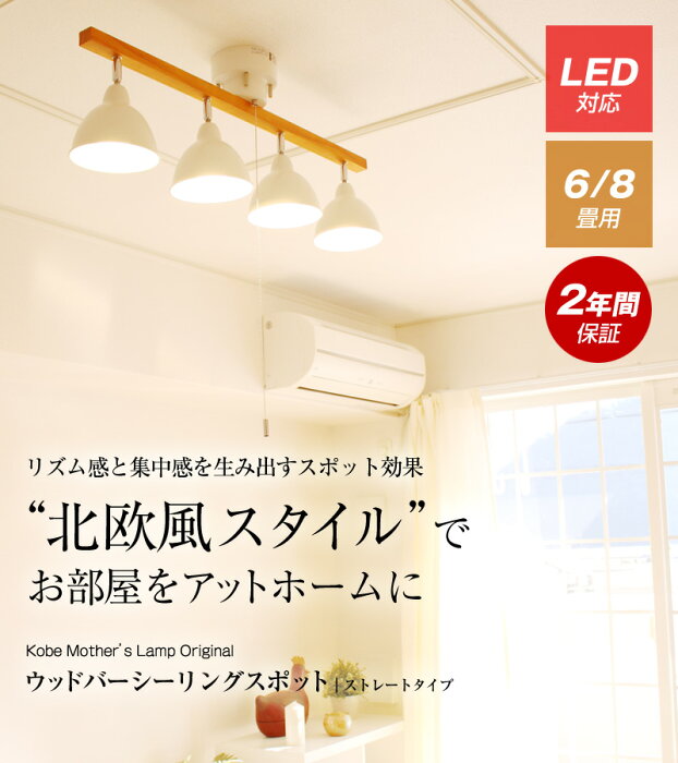 【選べる電球ウッドバーライト】照明器具【送料無料】シーリングライト シーリングスポット ストレート 照明 天井照明 4灯 6畳 8畳 10畳 LED 直付け モダン シンプル おしゃれ 北欧 リビング ダイニング ワンルーム 新生活 シンプル 子供部屋 新築 明るい 居間 食卓 西海岸